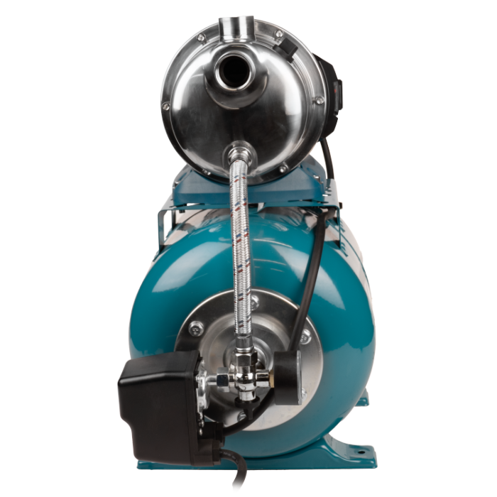 Con una potenza di 800 W, il gruppo di pressurizzazione consente l’aspirazione dell’acqua da una profondità fino a 7 m e il pompaggio fino a un’altezza massima di 38 m, garantendo una portata massima di 83 L/min. Il vaso di espansione con una capacità di 19 L contribuisce a ridurre il numero di avviamenti della pompa, prolungando la durata di vita dell’apparecchiatura. Il corpo pompa è realizzato in ghisa resistente alla corrosione, offrendo maggiore durata e affidabilità nel funzionamento a lungo termine. Il serbatoio è realizzato in acciaio verniciato elettrostaticamente, offrendo elevata resistenza, e all’interno è dotato di una membrana in EPDM di alta qualità, un materiale elastico e resistente alle variazioni di pressione.